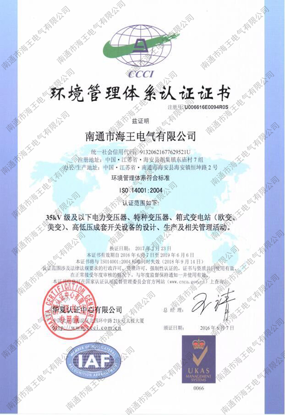 環(huán)境管理體系認(rèn)證證書